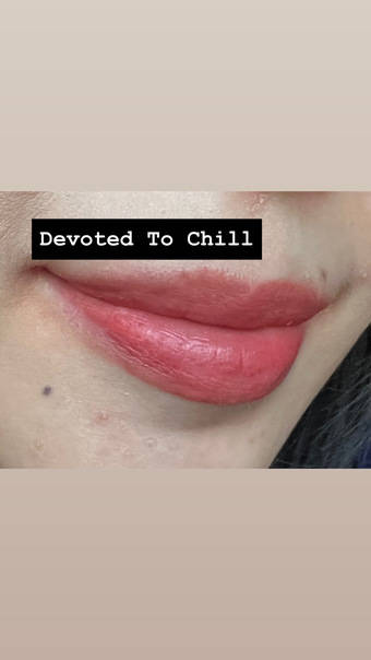 輕微淡化唇紋,覆蓋原有唇色,全日唇妝keep住唔乾,飲水食野仲保留到7成色,而不感到厚重