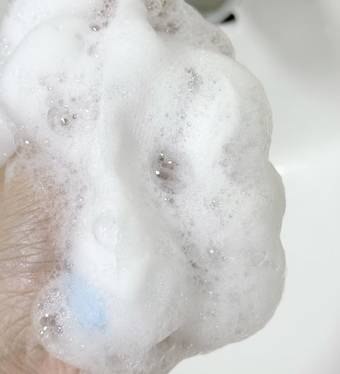 擠出嚟係好似乳酪嘅質地,加少少水就可以搓到超多幼細泡沫。我用咗起泡網,泡沫好豐盈!